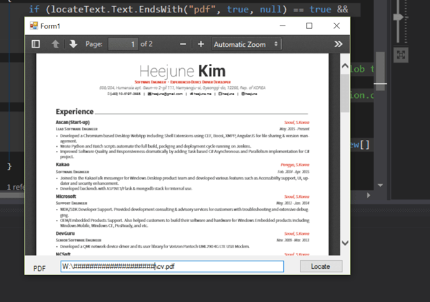 1. HI Heejune…I went through your github code and tried to run the c# applicatoin. However, navigation button (previous/next), zoomin, zoom out and all other buttons are not responding on click. Could you please let me know what can be the issue ? Further, how can I refer to the target PDF as local file as mentioned by you above.