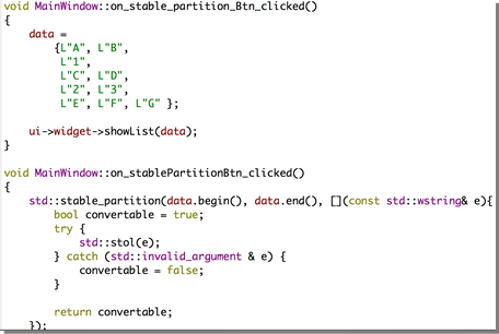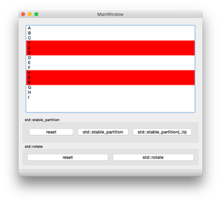 From the beginning of Sean Parent’s great C++ talk, he represented two std algorithms people may not be familiar of. It’s ‘std::stable_partition’ and ‘std::rotate’.